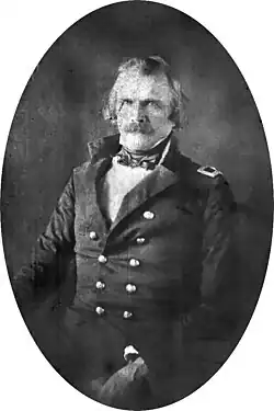 In 1855, 14th president Franklin Pierce appointed him colonel of the new 2nd U.S. Cavalry (the unit that preceded the modern 5th U.S.), a new regiment, which he organized, his lieutenant colonel being Robert E. Lee, and his majors William J. Hardee and George H. Thomas.[3] Other subordinates in this unit included Earl Van Dorn, Edmund Kirby Smith, Nathan G. Evans, Innis N. Palmer, George Stoneman, R.W. Johnson, John B. Hood, and Charles W. Field, all future Civil War generals.[14] On March 31, 1856, Johnston received a promotion to temporary command of the entire Department of Texas. He campaigned aggressively against the Comanche, writing to his daughter that "the Indians harass our frontiers and the 2nd Cavalry and other troops thrash them wherever they catch them."[15] In March 1857, Brigadier General David E. Twiggs was appointed permanent commander of the department and Johnston returned to his position as colonel of the 2nd Cavalry.