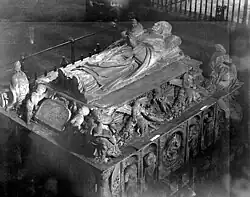 On 3 May 1118, the territory was conquered by the Archbishop of Toledo Bernard de Sedirac at behest of the Kingdom of Castile. Soon after, on 10 February 1129,[16] Alfonso VII gave Alcalá to Raymond de Sauvetât, also Archbishop of Toledo, becoming an archiepiscopal property for centuries to come.[17] Raymond granted the town an old fuero (charter) in 1135.[18] The document acknowledged a doublet of settlements, mentioning the castle and the town.[19] Throughout the middle ages, presumably also including 11th-century Islamic Alcalá,[20] the place also had a Jewish population, protected by the Archishops of Toledo under Christian rule, whose aljama should have had a size of about 750 by 1292.[n. 1] As warfare was left behind, the population in the more fertile and better communicated plains grew in importance relative to the castle, although the right bank settlement and the whole did not preserve the Christian name of Burgo de San Justo (or that of Complutum for that matter), but took the name of Alcalá.[14]