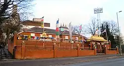 Aldershot Buddhist Centre is a Buddhist temple and community centre catering for the Buddhists of Aldershot and surrounding area, which is billed as the United Kingdom's first Buddhist community centre.[50] With the influx of large numbers of Nepalis into the area in recent years giving Rushmoor the largest Buddhist community in the United Kingdom,[50][51][52] a temple and community centre to cater for their spiritual and secular needs was required. The centre was formally opened on the High Street by the 14th Dalai Lama in June 2015.[50][53]