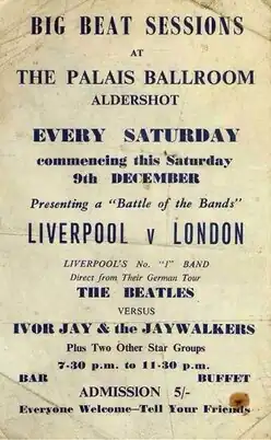 - ^ "The Beatles at the Palais Ballroom in Aldershot – The Beatles Bible website". 9 December 1961. Archived from the original on 21 July 2015. Retrieved 17 July 2015.