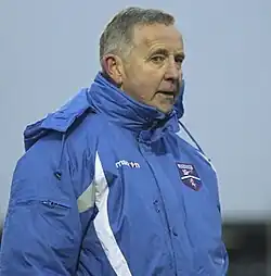 In January 2011 Kevin Dillon left the club by mutual agreement, with the club lying 20th in League Two, after winning just 6 out of 22 league games.[12] Dillon was replaced by Newport County manager Dean Holdsworth.[13] Holdsworth succeeded in removing the threat of relegation, eventually guiding the club to 14th position in a run which included only 4 defeats in the second half of the season. Aldershot finished 11th in the 2011–12. A good run in the League Cup saw Aldershot take on Manchester United at home, which ended in a 3–0 victory for the Red Devils. Holdsworth was sacked by Aldershot on 20 February 2013 with the team in 20th place in League Two.[14]