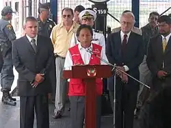 Maria Elena García calls the years of Toledo's presidency a transition ripe with new opportunities for indigenous people, noting the "reframed state-indigenous interactions", "increase in NGO projects and social movements", and "proliferation of indigenous organizations."[48] Toledo created and first lady Eliane Karp headed a new agency for indigenous and Afro-Peruvian affairs, CONOPA (Commission for Amazonian, Andean, and Afro-Peruvian Peoples). The agency was meant to establish a development agenda for indigenous communities, provide representation of indigenous interests within the government, and lead the way for multicultural constitutional reforms. Some critics viewed these actions as a state co-optation of indigenous identity, mockingly dubbing the agency the "Karp Commission".[49] However, Oxfam's Martin Scurrah points out the agency's good work, noting that in addition to promoting a chapter on indigenous rights in the new constitution, Eliane Karp has "intervened on numerous occasions in support of or in defense of indigenous initiatives."[48]