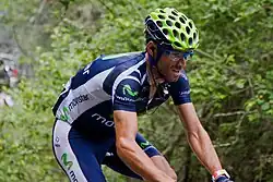 Alejandro Valverde Belmonte (born 25 April 1980) is a Spanish cyclist, who competed as a professional in road bicycle racing from 2002 to 2010 and from 2012 to 2022, and now competes in gravel cycling for the Movistar Team Gravel Squad.[6] Since March 2025, he has been the coach of the men's Spanish national team.[7]