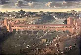 The county of Alessandria remained steadily under Milan and followed its destiny: initially the House of Sforza restored the Duchy, which was subsequently occupied multiple times by the French, then Milan became a Spanish province. With its submission, first to Milan and then to Spain, Alessandria lost that autonomy that had distinguished the city ever since its foundation, even though its new political stability favoured its rapid development, which made of the town an important commercial hub between Lombardy and Genoa. The Tanaro bridge, whose construction started in 1455 after the will of Francesco Sforza, was equipped with new flooring and covering during the 17th century.