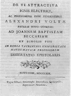 - De vi attractiva ignis electrici, ac phaenomenis inde pendentibus [The attractive force of an electric fire and the resulting phenomena] (in Latin). Novo Comi: Typis Octavii Staurenghi. 1769. OCLC 1419897.
