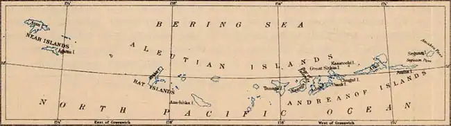 11. ^ a b c d e f g h i j k One or more of the preceding sentences incorporates text from a publication now in the public domainChisholm, Hugh, ed. (1911). "Aleutian Islands". Encyclopædia Britannica. Vol. 1 (11th ed.). Cambridge University Press. pp. 543–544.