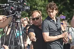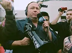 Jones has described himself as a conservative, paleoconservative, and libertarian, terms he uses interchangeably.[121][122] Others describe him as right-wing,[123] alt-right,[124] far-right,[125][126] and populist.[2] Asked about such labels, Jones said he is "proud to be listed as a thought criminal against Big Brother".[2]