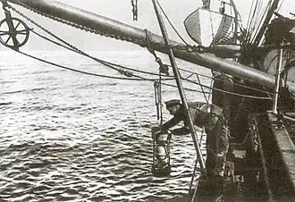 After becoming a lieutenant, Kolchak took part in Baron Eduard von Toll's Russian Polar expedition on the ship Zarya as a hydrologist and cartographer.[7] During the winter of 1901, Kolchak and Toll rode on dog sleds for 500 km to make a topographic survey of the Taymyr Peninsula, and in the spring they took dog sleds to make a geologic and hydrographic study of the New Siberian Islands. In 1902 he studied the East Siberian Sea while he was onboard Zarya.[7] After considerable hardship, Kolchak returned in December 1902; Toll, along with three other explorers continued further north and were lost. Kolchak took part in two Arctic expeditions to look for the explorers but could not find them and for a while was nicknamed "Kolchak-Poliarnyi" ("Kolchak the Polar"). For his explorations Kolchak received the Constantine Medal, the highest award of the Imperial Russian Geographical Society.