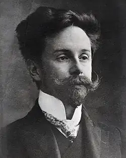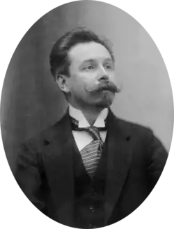 Alexander Nikolayevich Scriabin[n 1] (6 January 1872 [O.S. 25 December 1871] – 27 April [O.S. 14 April] 1915) was a Russian composer and pianist. Before 1903, Scriabin was greatly influenced by the music of Frédéric Chopin and composed in a relatively tonal, late-Romantic idiom. Later, and independently of his influential contemporary Arnold Schoenberg, Scriabin developed a much more dissonant musical language that had transcended usual tonality but was not atonal,[3] which accorded with his personal brand of metaphysics. Scriabin found significant appeal in the concept of Gesamtkunstwerk as well as synesthesia, and associated colours with the various harmonic tones of his scale, while his colour-coded circle of fifths was also inspired by theosophy. He is often considered the main Russian symbolist composer and a major representative of the Russian Silver Age.[4]