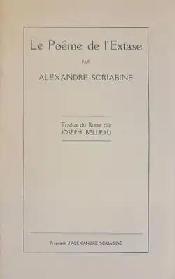 Le Poême de l’Extase—Traduction française de Joseph Belleau—Imprimé par Alexandre Scriabine—Don fait par la veuve du pianiste canadien et proche ami de Scriabine Alfred LaLiberté au grand pianiste canadien Marc-André Hamelin
