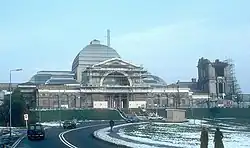 A masterplan for the future of the site was drawn up in 2012, comprising six "big ideas" to restore and redevelop the Palace.[39] The first of these to be implemented aimed to transform the derelict eastern end of the Palace, making the Victorian theatre and the historic BBC Studios accessible. In 2013 the Heritage Lottery Fund awarded a Round 1 pass to develop the proposals, creating a new entrance in the restored East Court, re-establishing the theatre as a flexible performance space and reopening the BBC Studios as a visitor attraction. There was controversy regarding plans to demolish the brick infills in the colonnade on the southeastern face of the building, which the BBC constructed after 1936 to form their television studios within.[40] Following a public consultation and advice from English Heritage, Planning and Listed Building Consent was given for the proposals, and in March 2015 HLF awarded Round 2 major grant funding.[41]