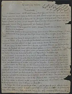 8. ^ Letter from M. de Chauvinault, former royal prosecutor in Jérémie, Saint Domingue, to the Count de Maulde, 3 June 1776, privately held by Gilles Henry. Note: It says Dumas's father (then known as Antoine de l’Isle) “bought from a certain Monsieur de Mirribielle a negress named Cesette at an exorbitant price,” then, after living with her for some years, “sold... the negress Cezette” along with her two daughters "to a... baron from Nantes." Original French: "il achetais d’un certain Monsieur de Mirribielle une negresse nommée Cesette à un prix exhorbitant"; "qu’il a vendu à son depart avec les negres cupidon, la negresse cezette et les enfants à un sr barron originaire de nantes." (The spelling of her name varies within the letter.)