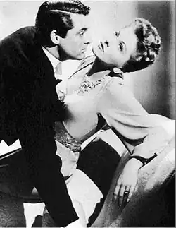 Suspicion (1941) marked Hitchcock's first film as a producer and director. It is set in England; Hitchcock used the north coast of Santa Cruz for the English coastline sequence. The film is the first of four in which Cary Grant was cast by Hitchcock, and it is one of the rare occasions that Grant plays a sinister character. Grant plays Johnnie Aysgarth, an English conman whose actions raise suspicion and anxiety in his shy young English wife, Lina McLaidlaw (Joan Fontaine).[139] In one scene, Hitchcock placed a light inside a glass of milk, perhaps poisoned, that Grant is bringing to his wife; the light ensures that the audience's attention is on the glass. Grant's character is actually a killer, according to the book, Before the Fact by Francis Iles, but the studio felt that Grant's image would be tarnished by that. Hitchcock would have preferred to end with the wife's murder.[140][f] Instead, the actions that she found suspicious are a reflection of his own despair and his plan to commit suicide. Fontaine won Best Actress for her performance.[142]
