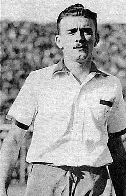 Di Stéfano played with three different national teams during his career,[8] scoring six goals in six appearances for Argentina, and 23 in 31 appearances for Spain. However, he never played in the World Cup.[8] Di Stéfano also played four times for Colombia, during the Dimayor period of Colombian football. The team at the time was not recognised by FIFA as the league had broken transfer rules in signing players while still under contract.[34][35][36]