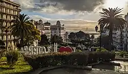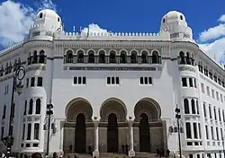 Under French rule, Algiers became the capital of French Algeria, "an integral part of the French Republic" according to a formal annexation declared on 22 June 1834.[24] Following this, interest turned into the completion of the French conquest of Algeria that shared goals with its pacification efforts; Establishing a European cultural, economic and political presence in Africa without considering the indigenous population's lifestyle or connection to their land. Plans to transform the face of the city to match French standards and architectural trends began shortly after obtaining the city. Originally, the Casbah extended to the sea, but it was pushed back to the hills above after demolishing the walls and lower half of the old city and erecting the current "Place des Martyrs",[25] constructing promenades and boulevards that circle the city or face the Mediterranean, tracing new streets and building apartments that are characterized by their "Haussmanian" Style.[26]