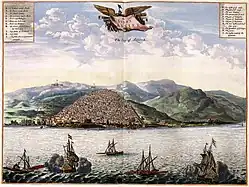 On 27 August 1816, the Bombardment of Algiers took place city by a British squadron under Lord Exmouth (a descendant of Thomas Pellew, taken in an Algerian slave raid in 1715[20]), assisted by men-of-war from the Kingdom of the Netherlands, destroying the corsair fleet harboured in Algiers.[10]