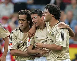 Karimi with Roy Makaay and Michael Ballack during a game in 2006