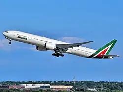 Alitalia 777-300ER departing New York JFK in 2019