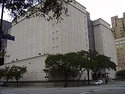 On June 18, 2009, FBI agents took Stanford into custody.[42] On June 25, 2009, he appeared in a Houston court and pleaded not guilty to charges of fraud, conspiracy, and obstruction.[43] On August 27, 2009, Stanford was admitted into the Conroe, Texas, Regional Medical Center. He had complained of a racing heart during transport from the private prison in Huntsville, Texas, to the Federal Courthouse in Houston to attend a hearing concerning his attorney, Dick DeGuerin, who had asked the court for permission to withdraw from Stanford's case.[44] Robert Luskin of Patton-Boggs, which had been representing Stanford in a simultaneous civil case, was to be lead counsel.[45]