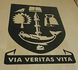 Via Veritas Vita (lat. "The path and the truth and the life", from Gospel of John 14:6). Motto of the University of Glasgow.