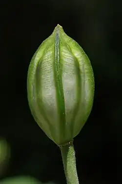 The fruits are capsules that open longitudinally along the capsule wall between the partitions of the locule.[20][21] The seeds are black, and have a rounded shape.