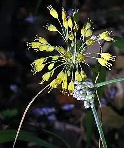 Allium includes a number of taxonomic groupings previously considered separate genera (Caloscordum Herb., Milula Prain and Nectaroscordum Lindl.) Allium spicatum had been treated by many authors as Milula spicata, the only species in the monospecific genus Milula. In 2000, it was shown to be embedded in Allium.[26]