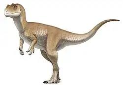 37. ^ a b c d e f g Carrano, Benson; Sampson (2012). "The phylogeny of Tetanurae (Dinosauria: Theropoda)". Journal of Systematic Palaeontology. 10 (2): 211–300. Bibcode:2012JSPal..10..211C. doi:10.1080/14772019.2011.630927. S2CID 85354215.