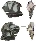 In 2006, Octávio Mateus and colleagues reported a partial skull and three neck vertebrae (ML 415) from the Vale Frades beach in Lourinhã. As this specimen differed from North American Allosaurus fossils, they assigned it to a new species, A. europaeus. These authors also assigned the Andrés specimen to this species, though solely based on the fact that it was found in Portugal. The presence of a separate Allosaurus species in Europe would suggest that faunal interchange between the continents was interrupted, possibly due to the opening of the Atlantic Ocean.[28][32] The status of A. europaeus was controversially discussed in the subsequent years, with different studies arguing that the species is a synonym of A. fragilis,[33] a nomen dubium (doubtful name),[30] or in need of re-evaluation.[34] In 2024, André Burigo and Mateus re-described the Vale Frades specimen and carried out further fossil preparation that exposed additional bones. These authors identified nine unique features supporting the validity A. europaeus.[35] A 2025 study by Elisabete Malafaia and colleagues described the Andrés specimens in detail, including a newly discovered set of skull bones. Their analysis of the relationships between individual Allosaurus skulls instead suggested that A. europaeus is a synonym of A. fragilis because the Andrés specimens were more closely related to some North American specimens than to the Vale Frades specimen.[28]