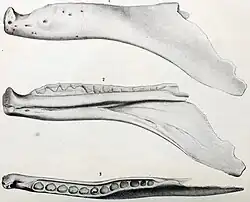 69. ^ von Zittel, Karl Alfred (1887). Handbuch der Palaeontologie. 1. Abth. Palaeozoologie. III. Band Vertebrata (in German). Munich and Leipzig: Druck und Verlag von R. Oldenbourg. p. 725.