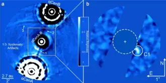 - ^ Carter, Aarynn L.; Hinkley, Sasha; Kammerer, Jens; Skemer, Andrew; Biller, Beth A.; Leisenring, Jarron M.; Millar-Blanchaer, Maxwell A.; Petrus, Simon; Stone, Jordan M.; Ward-Duong, Kimberly; Wang, Jason J.; Girard, Julien H.; Hines, Dean C.; Perrin, Marshall D.; Pueyo, Laurent (2023). "The JWST Early Release Science Program for Direct Observations of Exoplanetary Systems I: High-contrast Imaging of the Exoplanet HIP 65426 b from 2 to 16 μm". The Astrophysical Journal Letters. 951 (1): L20. arXiv:2208.14990. Bibcode:2023ApJ...951L..20C. doi:10.3847/2041-8213/acd93e.
