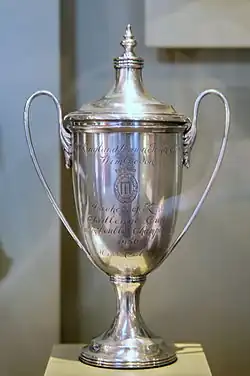 Gibson's five Wimbledon trophies are displayed at the Smithsonian Institution's National Museum of American History.[110] The Althea Gibson Cup seniors tournament is held annually in Croatia, under the auspices of the International Tennis Federation (ITF).[111] The Althea Gibson Foundation identifies and supports gifted golf and tennis players who live in urban environments.[112] In 2005 Gibson's friend Bill Cosby endowed the Althea Gibson Scholarship at her alma mater, Florida A&M University.[113]