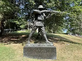 On June 5, 1917, at the age of 29, Alvin York registered for the draft, as all men between 21 and 30 years of age were required to do as a result of the Selective Service Act. When he registered for the draft, he answered the question "Do you claim exemption from draft (specify grounds)?" by writing "Yes. Don't Want To Fight."[12] When his initial claim for conscientious objector status was denied, he appealed.[13] During World War I, conscientious objector status did not exempt the objector from military duty. Such individuals could still be drafted and were given assignments that did not conflict with their antiwar principles. In November 1917, while York's application was considered, he was drafted and began his army service at Camp Gordon, Georgia.[14]