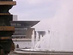 The fountain in Amaliehaven, with Copenhagen Opera House in the background, across the water
