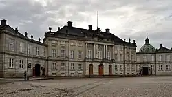 Amalienborg (Danish pronunciation: [æˈmɛˀljn̩ˌpɒˀ]) is the official residence for the Danish royal family and is located in Copenhagen. Frederick VIII's palace complex has four identical Classical façades, effectively four palaces, with Rococo interiors, laid around an octagonal courtyard (Danish: Amalienborg Slotsplads). At the centre is a large equestrian statue of Frederick V. Amalienborg was originally built for four noble families, but after Christiansborg Palace burned in 1794 the royal family bought the palaces and moved in. Over the years various monarchs and their families have lived there, including today's King Frederik X and Queen Mary.