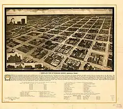 On June 19, 1888, Henry B. Sanborn, who is given credit as the "Father of Amarillo",[16] and his business partner Joseph F. Glidden began buying land to move Amarillo to the east after arguing that Berry's site was on low ground and would flood during rainstorms. Sanborn offered to trade lots in the new location to businesses in the original city's site and help with the expense of moving to new buildings. His incentives gradually won over some people who moved their businesses to Polk Street in the new commercial district.[17] Heavy rains almost flooded Berry's part of the town in 1889, prompting even more people to move to Sanborn's location. This eventually led to another county-seat election, which made Sanborn's site the new county seat in 1893.[11]