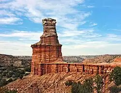 The Palo Duro Canyon State Park is the United States' second largest canyon system, after the Grand Canyon and is located Approximately 25 miles (40 km) southeast of Amarillo is Palo Duro Canyon. Palo Duro Canyon has a distinct hoodoo that resembles a lighthouse.