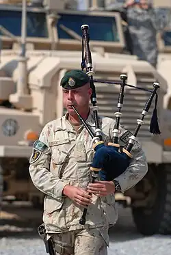 In 1972, the Royal Scots Dragoon Guards, the senior Scottish regiment of the British Army, recorded an instrumental version featuring a bagpipe soloist accompanied by a pipe band. The tempo of their arrangement was slowed to allow for the bagpipes, but it was based on Collins's: it began with a bagpipe solo introduction similar to her lone voice, then it was accompanied by the band of bagpipes and horns, whereas in her version she is backed up by a chorus. It became an international hit, spending five weeks at number-one in the UK Singles Chart,[82] topping the RPM national singles chart in Canada for three weeks,[83] and also peaking at number 11 on the Billboard Hot 100 in the US.[84][85] It is also a controversial instrumental, as it combined pipes with a military band. The Pipe Major of the Royal Scots Dragoon Guards was summoned to Edinburgh Castle and chastised for demeaning the bagpipes.[86]