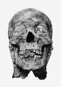 Mummified head of Amenhotep III following unwrapping