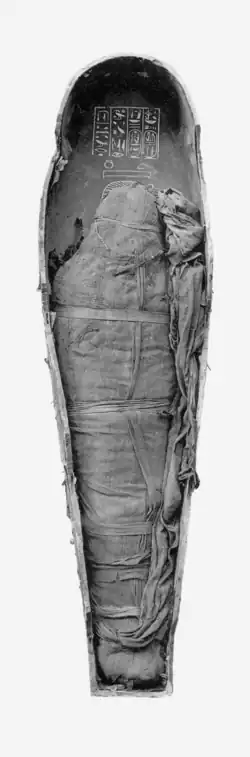 For the 18th dynasty, the mummy shows an unusually heavy use of subcutaneous stuffing to make the mummy look more lifelike.[68] The mummy has museum inventory number CG 61074.[68]