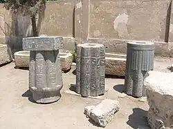 Papyraform columns with the names of Amenhotep III - XVIII dynasty, Merenptah - 19th dynasty and Sethnakht - 20th dynasty - New Kingdom Neithsabes