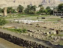 In 2021, excavations revealed a settlement near Amenhotep's mortuary temple, called the Dazzling Aten, believed to have been built by king[80] to house craftsmen and labourers working on royal projects at Thebes, along with its own bakery and cemetery.