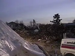 Five residents of Belle Harbor lost their lives in the crash:[39] Thomas (79) and Helen Concannon (73), an elderly married couple;[40] Kathleen Lawler (48) and her son Christopher Lawler (24) —a second-year law student at St. John's University—,[41] and Franco "Frank" Pomponio (45). Frank Pomponio's wife, daughter, and dog survived by escaping through the rear of their home, quickly navigating through billowing smoke. Frank, however, was directly struck and subsequently trapped while sleeping in the upstairs bedroom.[42] Moments later the family dog, Dakota (5), reportedly ran back into the wreck to find Frank. She disappeared in the flames but was found hours later in stable condition albeit with her paws severely damaged.[43] Frank is also survived by a son, Michael, who was attending SUNY Albany at the time of the incident. Evidently a close knit community, Kathleen Lawler's two surviving daughters, Katelyn and Jennifer, were attending Bishop Kearney High School alongside Frank's daughter, Jennifer Pomponio. All three were members of the school's varsity softball team. Jennifer was getting ready to leave for practice to join the Lawler sisters just before the plane struck. Kathleen is also survived by her husband, Thomas Lawler, and their son, Brendan Lawler.[41] Additionally, Frank Pomponio was a well-regarded and beloved coach of Bishop Kearney’s varsity softball team. Tragically, many students at Bishop Kearney had recently lost relatives in the 9/11 attacks which had occurred only two months prior. As reported by the New York Post, a total of 7 individuals linked to Bishop Kearney passed away in connection with both incidents.