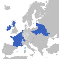 The Spanish and the Dutch became allies of the French in 1779 and 1780 respectively, forcing the British to fight a global war without major allies, and requiring it to slip through a combined blockade of the Atlantic. The Dutch Republic, also at war with Britain, was the next country after France to sign a treaty with the United States, on October 8, 1782.[84] On April 3, 1783, Ambassador Extraordinary Gustaf Philip Creutz, representing King Gustav III of Sweden, and Benjamin Franklin, signed a Treaty of Amity and Commerce with the U.S.[84]