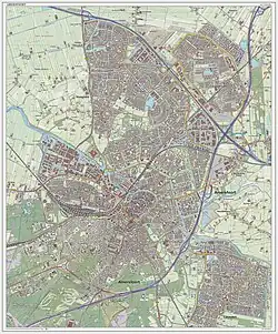 Amersfoort (Dutch pronunciation: [ˈaːmərsfoːrt] ⓘ) is a city and municipality in the province of Utrecht, Netherlands. As of 31 January 2023, the municipality had a population of 160,902, making it the second-largest of the province and fifteenth-largest of the country. Amersfoort is also one of the largest Dutch railway junctions with its three stations—Amersfoort Centraal, Schothorst and Vathorst—due to its location on two of the Netherlands' main east to west and north to south railway lines. The city was used during the 1928 Summer Olympics as a venue for the modern pentathlon events. Amersfoort marked its 750th anniversary as a city in 2009.[6]