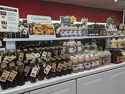Amish cuisine is noted for its simplicity and traditional qualities. Food plays an important part in Amish social life and is served at potlucks, weddings, fundraisers, farewells, and other events.[62][63][64][65] Many Amish foods are sold at markets, including pies, preserves, bread mixes, pickled produce, desserts, and canned goods. Many Amish communities have also established restaurants for visitors. Amish meat consumption is similar to the American average though they tend to eat more preserved meat.[66]
