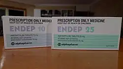- ^ a b c d "AMITRIPTYLINE HYDROCHLORIDE tablet, coated". DailyMed. 24 May 2024. Retrieved 30 September 2024.
