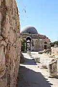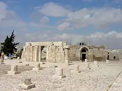 The occupation of the Citadel Hill by the Crusader Kingdom of Jerusalem is so far based only on interpretations of Crusader sources. William of Tyre writes in his Historia that in 1161 Philip of Milly received the castle of Ahamant, which is seen to refer to Amman, as part of the lordship of Oultrejordain.[44] In 1166 Philip joined the military order of the Knights Templar, passing on to them a significant part of his fief including the castle of Ahamant[45] or "Haman", as it is named in the deed of confirmation issued by King Amalric.[46] By 1170, Amman was in Ayyubid hands.[47] The remains of a watch tower on Citadel Hill, first attributed to the Crusaders, now are preferentially dated to the Ayyubid period, leaving it to further research to find the location of the Crusader castle.[46] During the Ayyubid period, the Damascene geographer al-Dimashqi wrote that Amman was part of the province of al-Karak, although "only ruins" remained of the town.[48]