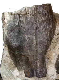 - ^ Klug, Christian; Kröger, Björn; Vinther, Jakob; Fuchs, Dirk (August 2015). "Ancestry, Origin and Early Evolution of Ammonoids". In Christian Klug; Dieter Korn; Kenneth De Baets; Isabelle Kruta; Royal H. Mapes (eds.). Ammonoid Paleobiology: From macroevolution to paleogeography. Topics in Geobiology 44. Vol. 44. Springer. pp. 3–24. doi:10.1007/978-94-017-9633-0_1. ISBN 978-94-017-9632-3.