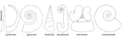 - Spherocone – Moderately involute and quite broad, globular (nearly spherical) in overall shape. Their semi-spherical shape is the most efficient for moving in laminar water (with a low Reynolds number) or migrating vertically through the water column. Though less hydrodynamically stable than other forms, this may be advantageous in certain situations, as spherocones can easily rotate around both the transverse axis[29] and the vertical axis (yaw).[26]