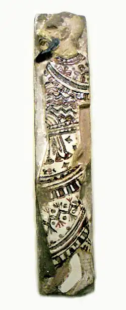 The language was first attested in the 21st–20th centuries BC and was found to be closely related to the Canaanite, Aramaic and Sam'alian languages.[24] In the 18th century BC at Mari Amorite scribes wrote in an Eshnunna dialect of the East Semitic Akkadian language. Since the texts contain Northwest Semitic forms, words and constructions, the Amorite language is thought to be a Northwest Semitic language. The main sources for the extremely limited extant knowledge of the Amorite language are the proper names and loanwords, not Akkadian in style, that are preserved in such texts.[25][17][26] Amorite proper names were found throughout Mesopotamia in the Old Babylonian period, as well as places as far afield as Alalakh in Turkey and modern day Bahrain (Dilmun).[27] They are also found in Egyptian records.[28]